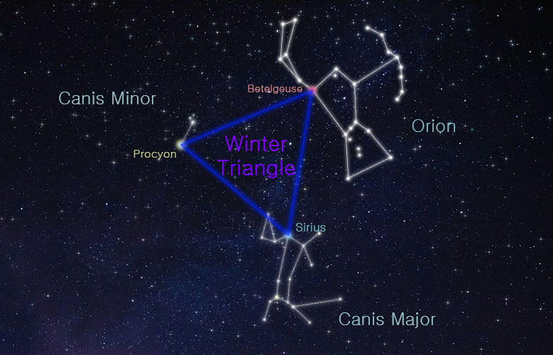 찬 바람이 부는 겨울 밤하늘을 올려다보면 유난히 밝게 빛나는 세 개의 별이 거대한 삼각형을 이루고 있는 것을 볼 수 있습니다. 이 세 별은 바로 시리우스(Sirius), 베텔기우스(Betelgeuse), 프로키온(Procyon)이며, 이들이 만들어내는 거대한 삼각형 형태의 별자리를 '겨울철 대삼각형'이라고 부릅니다. 이 삼각형은 공식적인 별자리는 아니지만, 겨울 밤하늘에서 가장 눈에 띄는 밝은 별들을 연결하여 초보 관측자도 쉽게 겨울 별자리를 찾는 데 도움을 주는 길잡이 역할을 합니다. 이번 글에서는 천문 애호가들의 깊은 사랑을 받는 겨울철 대삼각형을 구성하는 별들, 그 천문학적 특성, 유구한 역사와 다채로운 신화 속 이야기를 심도 있게 탐구하고자 합니다. 겨울 밤하늘의 주인공, 겨울철 대삼각형과의 이른 만남을 통해 여름의 무더위를 식히는 시간이 되기를 바랍니다.